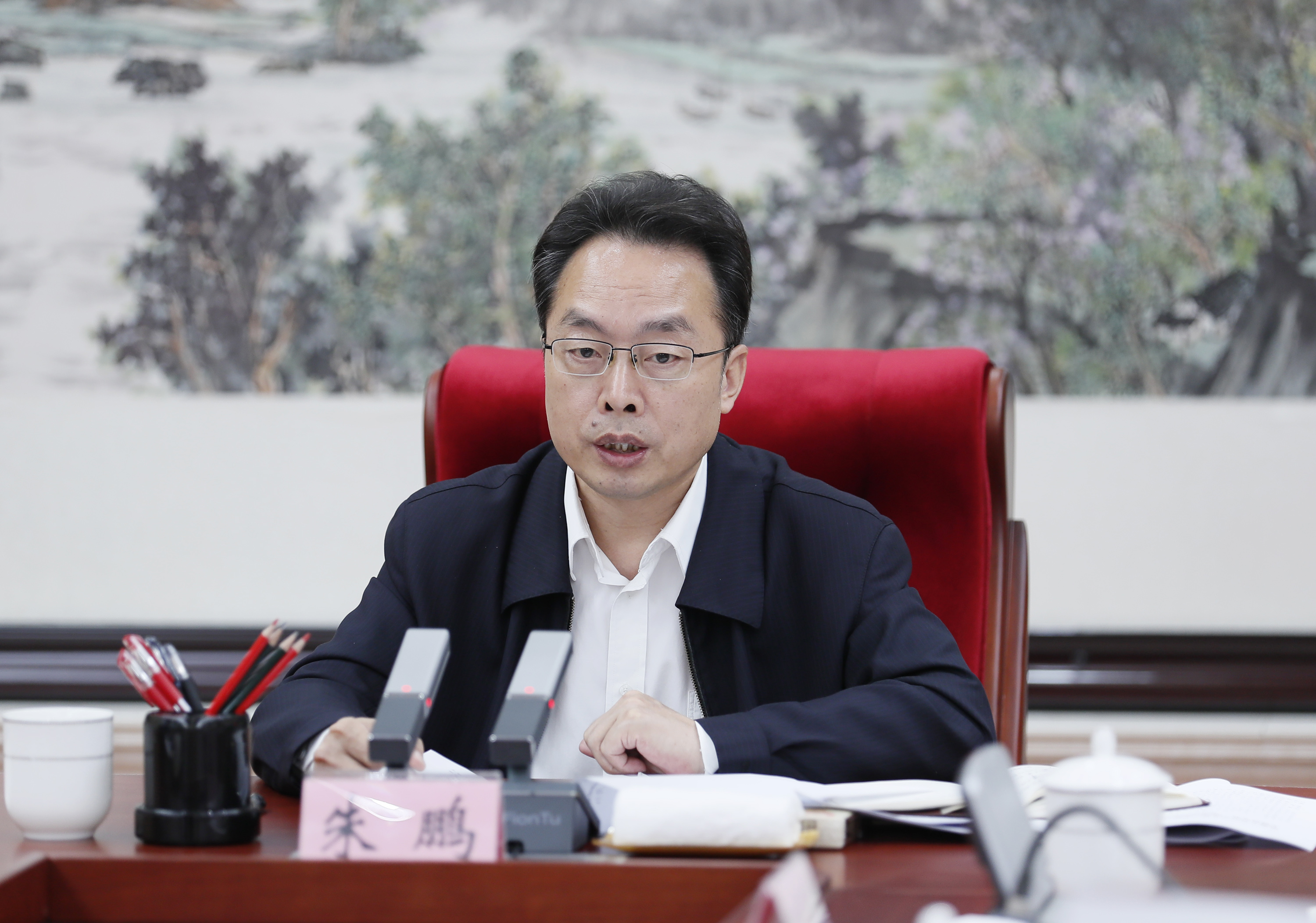 市委副书记、市政府党组书记、市长朱鹏主持会议并讲话。 记者 闫鑫 摄