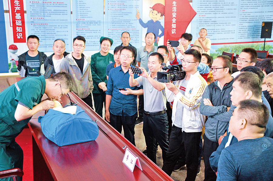 ▲近日,万荣县医院的医护人员在演示应急救护技能。