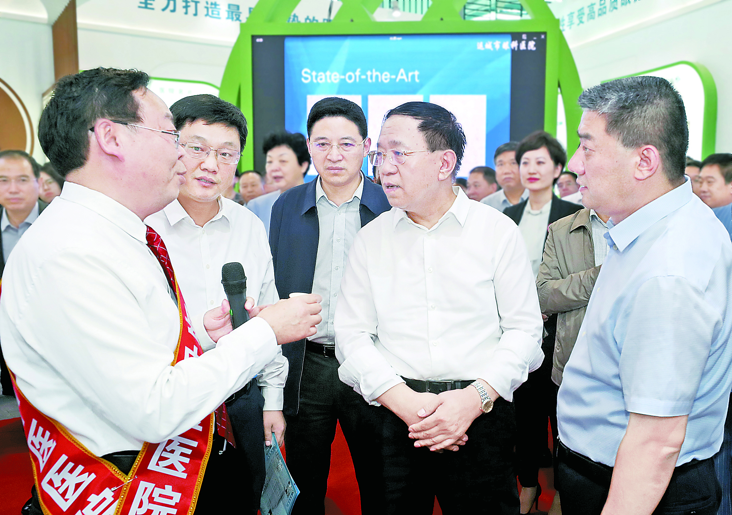 在特色医疗板块,市中心医院、市中医医院、市眼科医院和市口腔卫生医院、运城市第一医院等我市的标杆医院,精心布展,先进医疗器械和图文介绍互为补充,全面而又有重点展示各自的“亮点”,“吸睛”不少;来自各县(市、区)的特色医疗机构,将各自的特色手法、特色药物、特色操作和特色治疗等搬入展厅,现场展示,吸引不少前来参观的群众,寻医问药,诊疗治病。刘志宏、朱鹏逐一参观各个展位,不时与在场的医务人员交流,详细询问特色亮点、治疗效果、专家队伍建设情况。勉励他们要将各自的特色手法、特色药物、特色操作和特色治疗传承发展好,助力健康中国。