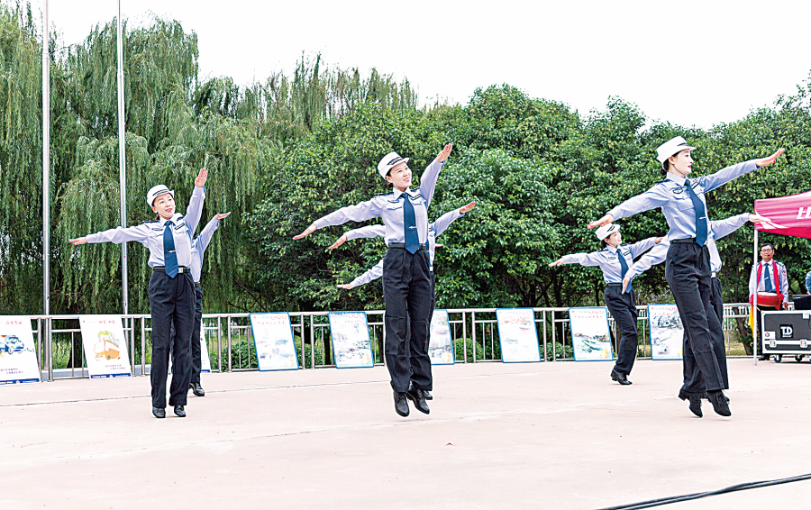 ▲稷山交通安全文艺小分队表演交通安全手势操 樊朋展 摄