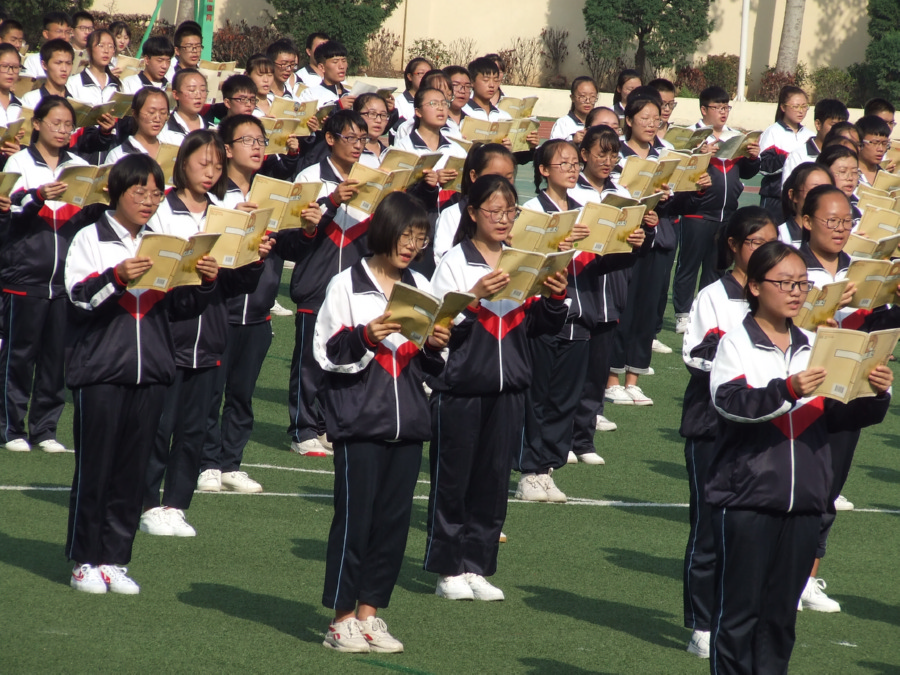 当天9时许,全体师生升国旗,奏国歌,迎庆新中国成立70周年。开幕式由三个篇章组成。第一篇章“经典流光”,全体学生吟诵《诗经》和《论语》经典篇章,在诵读中感受中华优秀的历史文化;第二篇章“爱国强音”,全体师生吟诵《满江红》《祖国啊,我亲爱的祖国》《青春中国》等爱国诗篇,展现了中华民族自强不息、薪火相传的爱国情怀。第三篇章“奋斗号角”,全体师生吟诵音诗画《奋斗》,歌颂了在中国共产党领导下,中国人民夺取民族解放、建设新中国和改革开放所取得的辉煌成就,特别展示了在习近平新时代中国特色社会主义思想指引下,全国人民不忘初心、砥砺奋斗的生动画卷。
