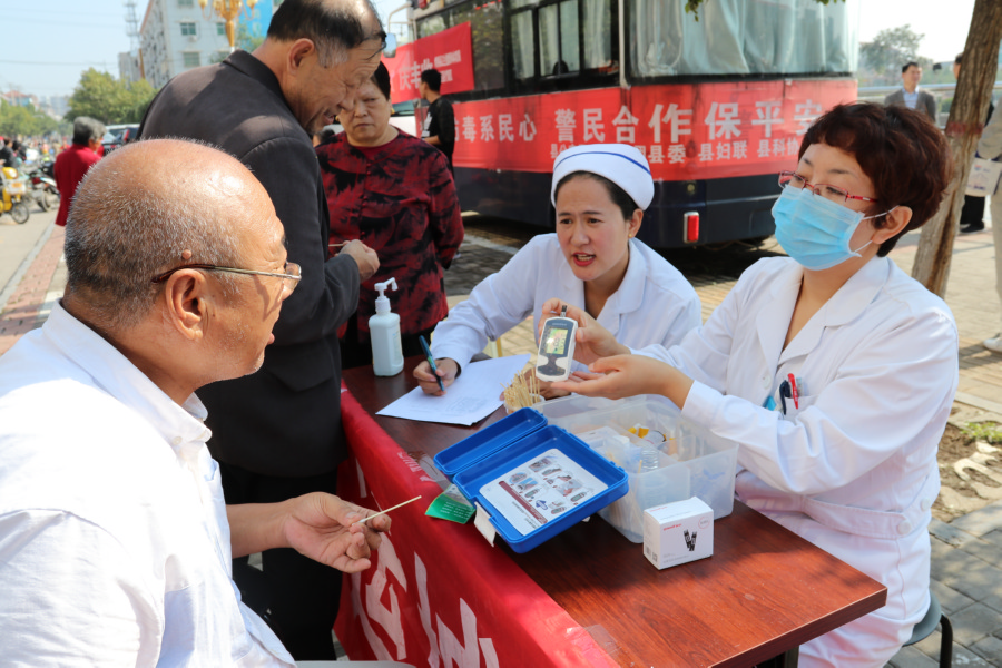 9月22日,运城同德医院闻喜分院医务人员在为广大群众义务筛查糖尿病。