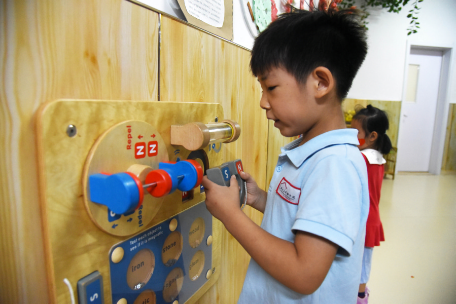 ▲9月25日,山东省济南市济水上苑幼儿园的小朋友在体验趣味科技。