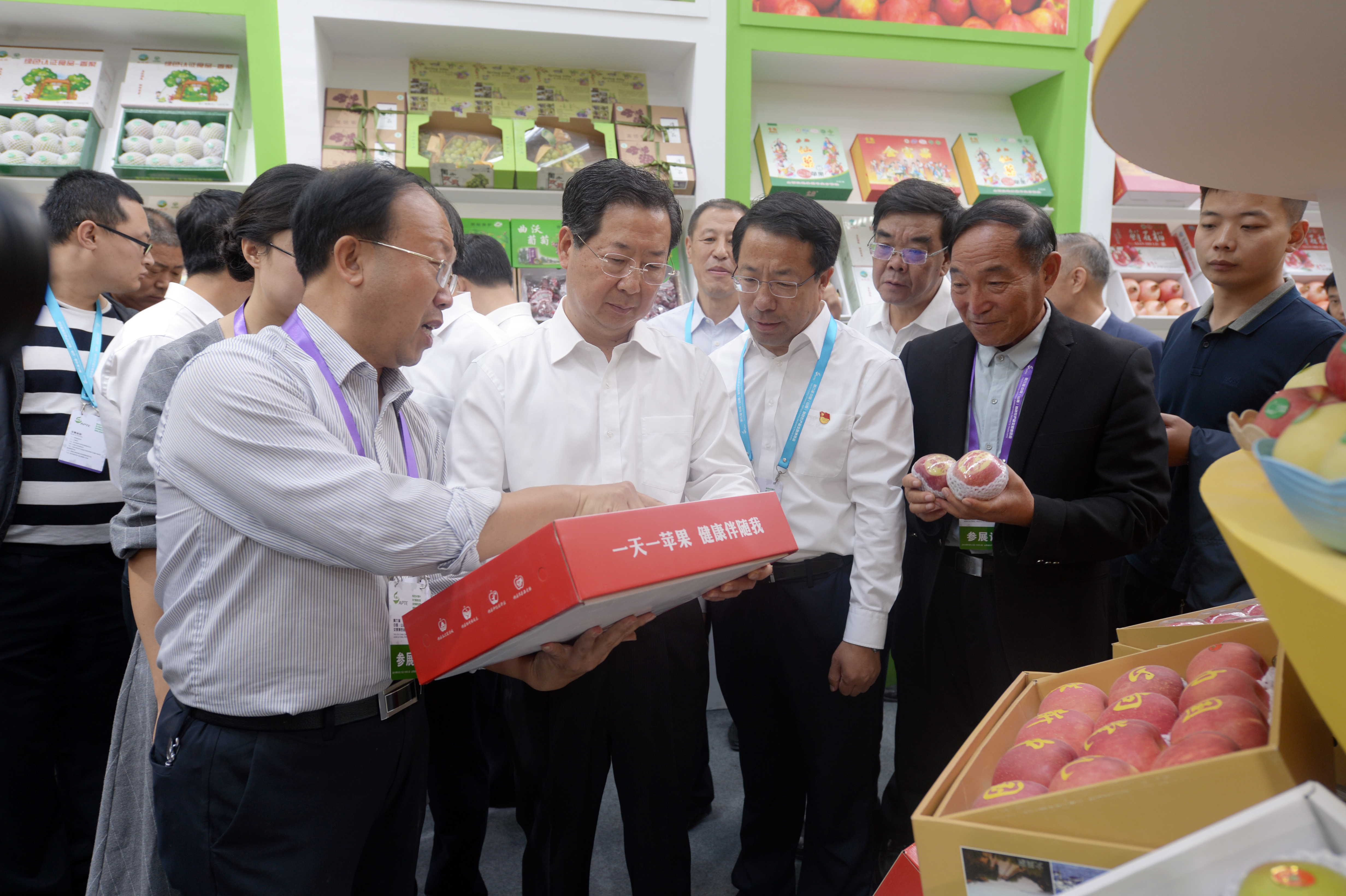 楼阳生在崔元斌陪同下,巡查了我市展区,对我市现代农业发展给予充分肯定。在运城面粉展位,楼阳生提出要充分发挥本地有机旱作优势,把运城面粉这一区域公用品牌叫响叫亮。楼阳生时刻牵挂着运城苹果省级出口平台建设。在果品水果区,他指出,要实施农产品出口平台战略,加快山西苹果走出去步伐,让山西苹果在市场上能卖个好价格,提高农民收入。同时,利用省级出口平台,倒逼全省果业和整个农业产业提档升级,进一步加强现代农业标准化建设。