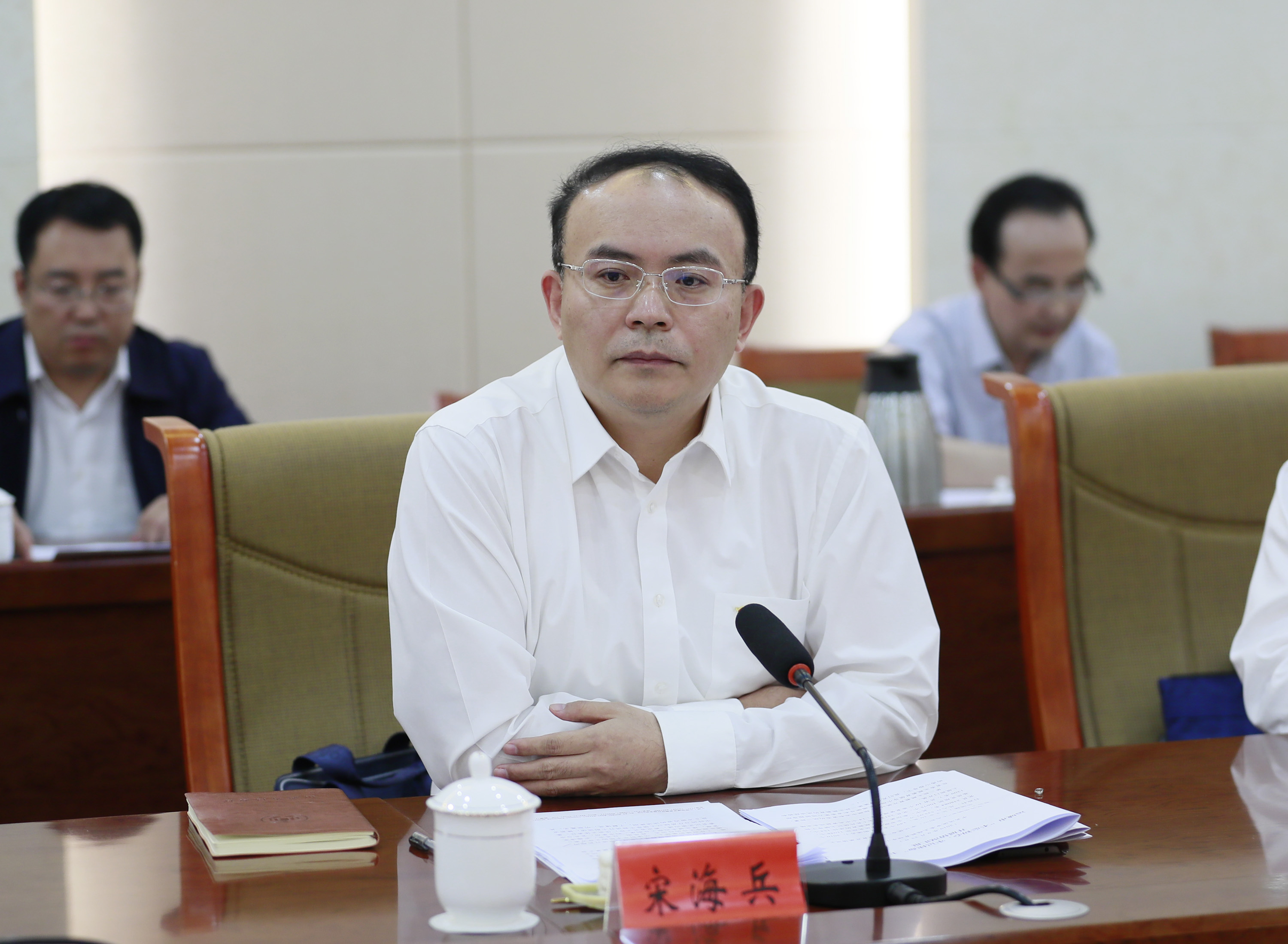 省委主题教育第六巡回指导组副组长宋海兵参加座谈。 记者 闫鑫 摄