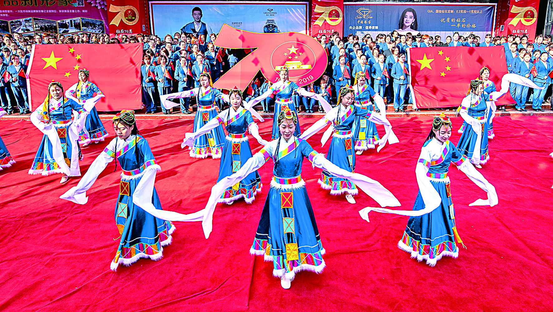 9月29日,市购物中心职工在活动中表演舞蹈节目。