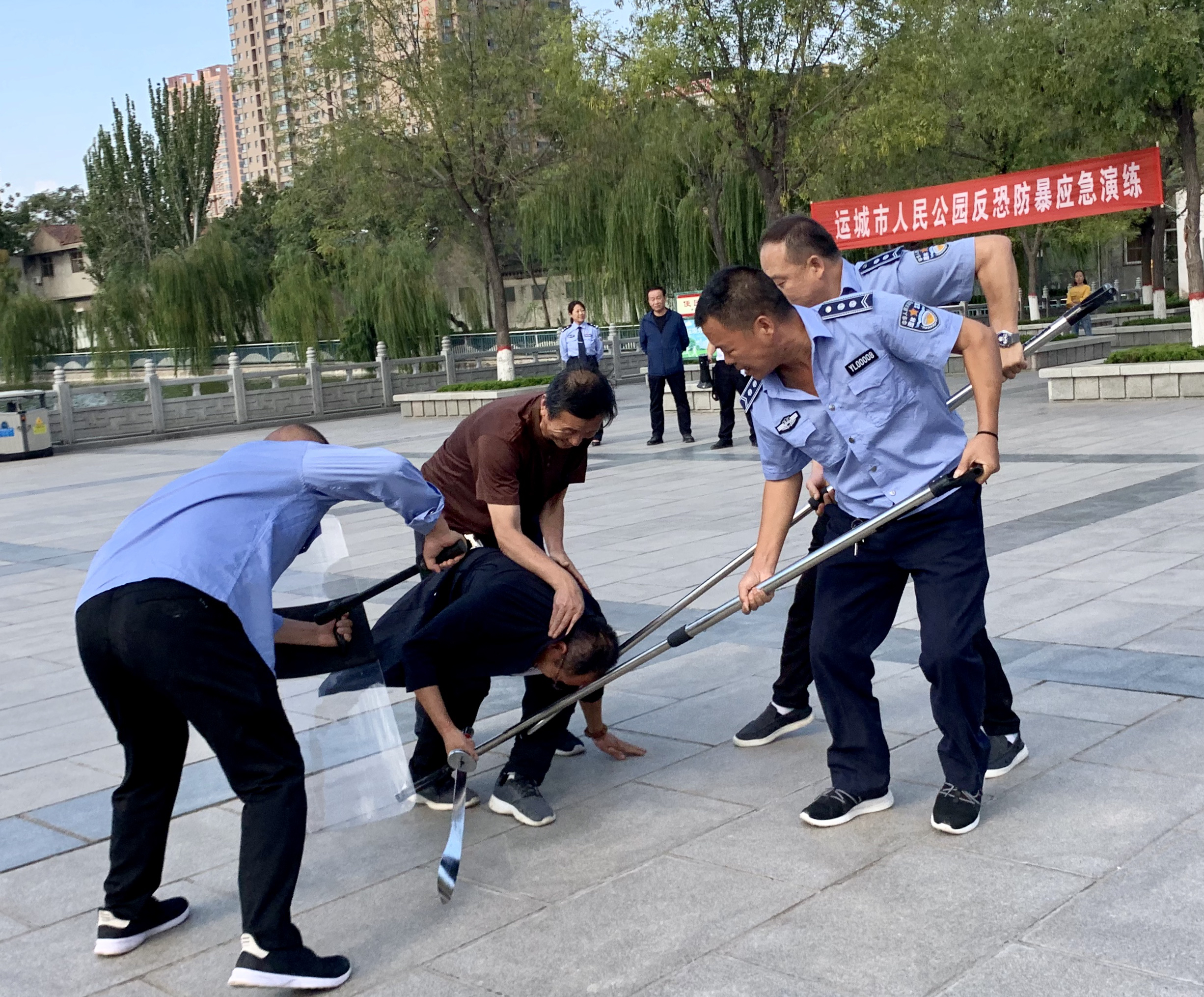 该公园相关负责人介绍,公园作为公众集聚场所,易成为犯罪分子制造事件的目标。为提高预防和处置暴力袭击的能力,人民公园迅速、高效、有序地开展应急演练。希望能通过这次演练,进一步增强公众应对暴力事件的意识,通过实战型防暴应急演练,提高公众自救能力。