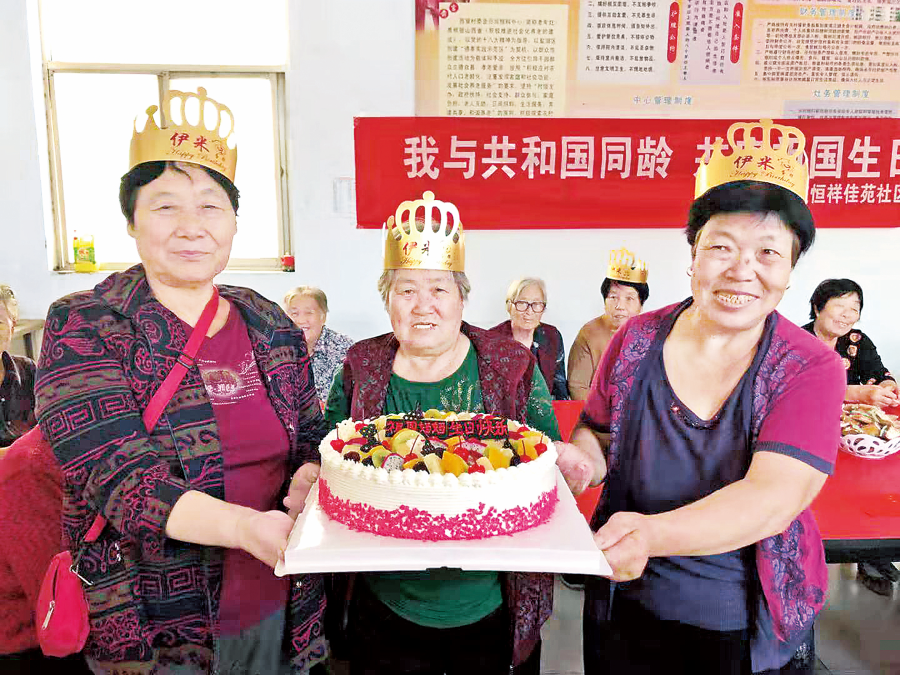 活动在大合唱《没有共产党就没有新中国》中开启。在祝福声中,8位老人共同切蛋糕,庆祝新中国成立70周年(上图)。老党员郭耀奎激动地说:“感谢中国共产党,带领人民过上幸福生活,希望我能为新中国庆祝百年生日!”