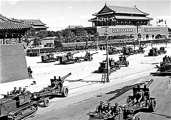 ▲开国大典上,骡马拖拽火炮接受检阅。(资料图)