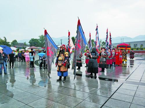 演出中,饰演开道大将军的是内蒙古人谢括。身披铠甲,手持弓箭,他一身行头就有15公斤。从事美术专业的他,对传统文化特别感兴趣,十年来一直参加类似的传统文化活动。因为从小非常喜欢关公,所以当得知要参加这次活动时他很高兴,希望能为弘扬关公文化作出一点贡献。“尽管下雨,但并不会影响自己的劲头,而是努力做到最好,展示自己角色最好的一面,让大家了解祭祀活动,了解关公文化背后的故事。”他说。