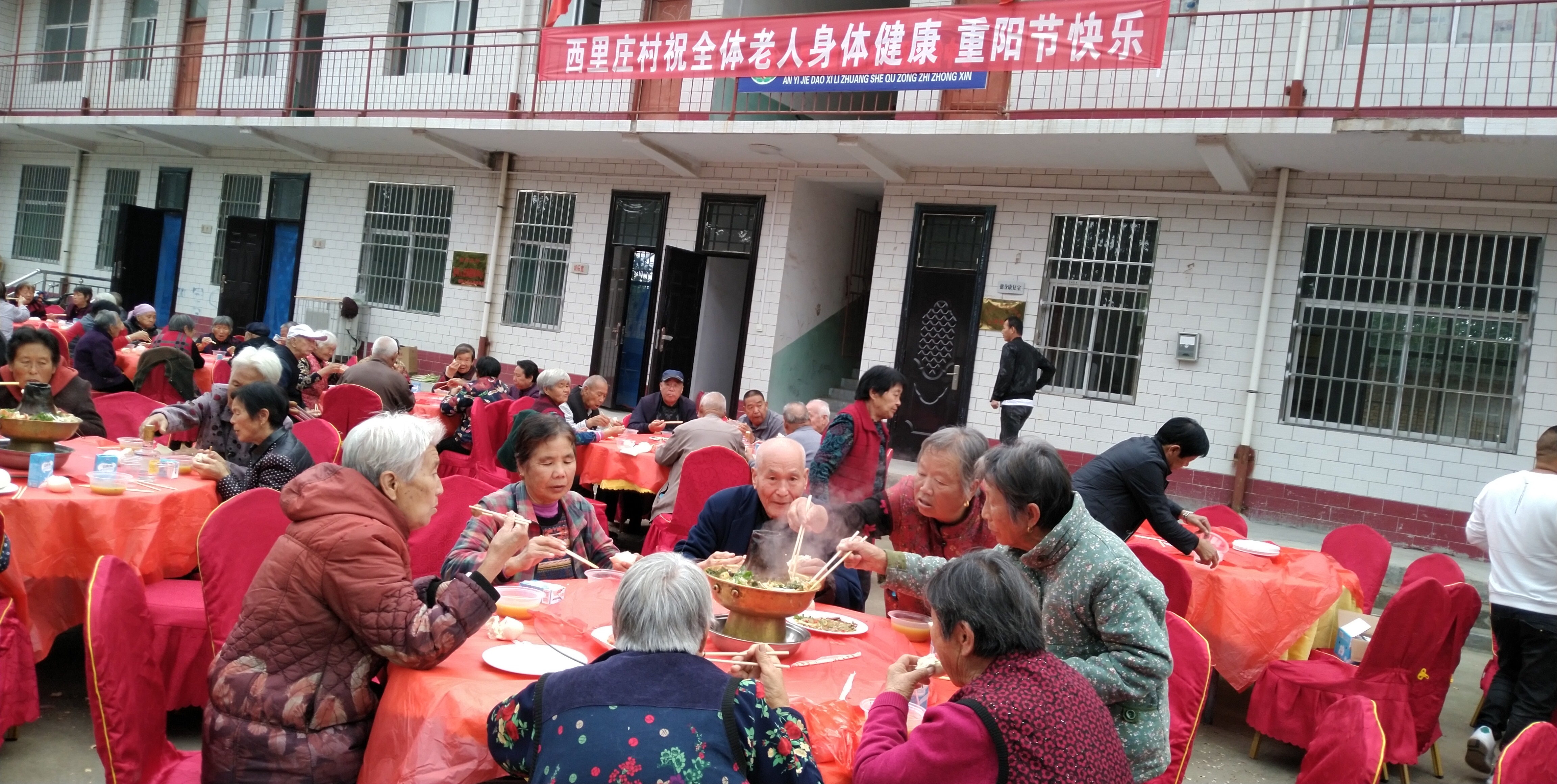 10月7日,盐湖区安邑办事处西里庄村100余位70岁以上老人在村委会大院免费用餐。