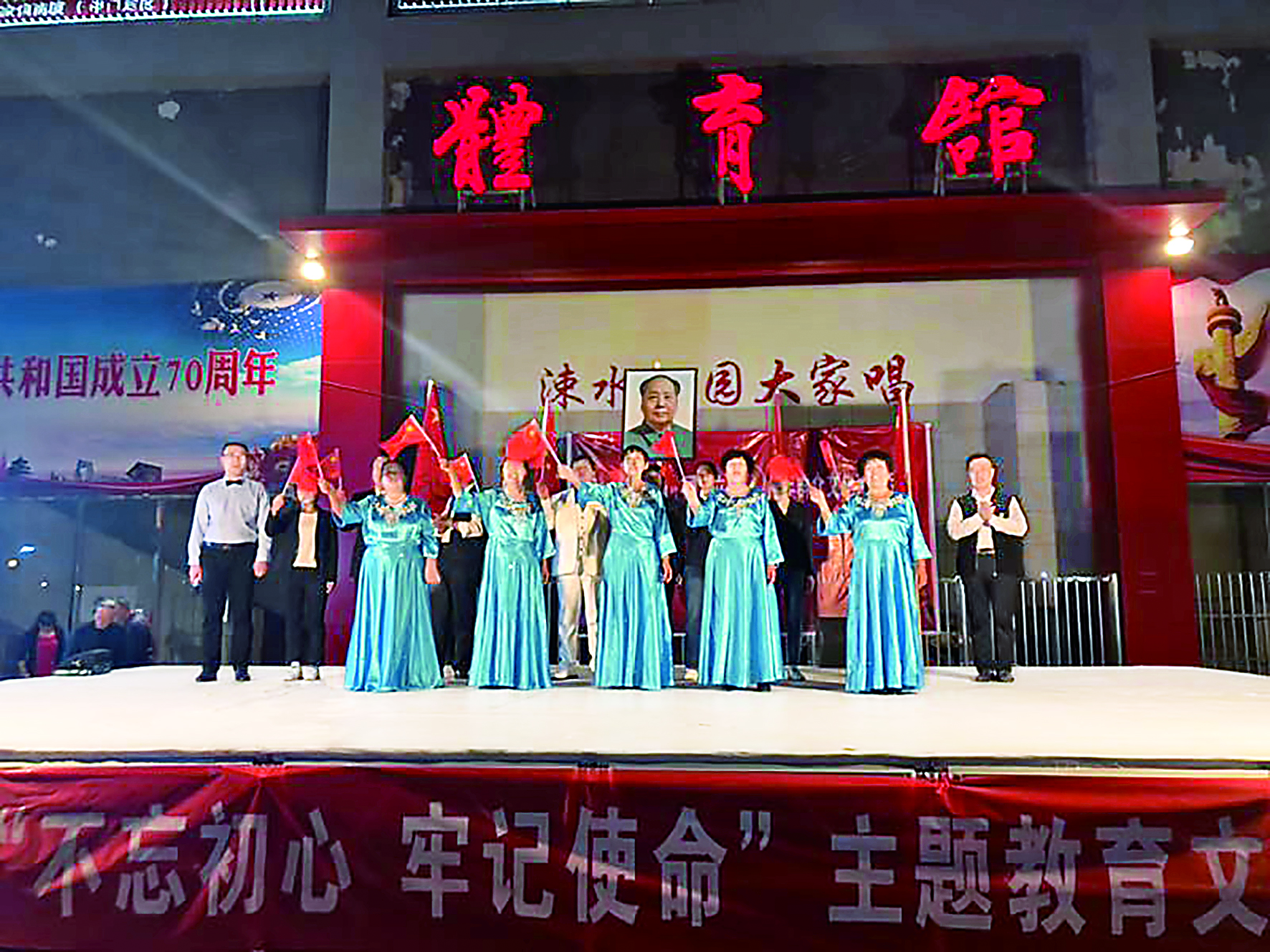 运城晚报讯 为了庆祝中华人民共和国成立70周年,深入开展“不忘初心、牢记使命”主题教育,进一步提升社区干部服务意识,增强守初心、担使命的责任感,9月27日晚,闻喜县东城社区在双喜广场举办了“迎国庆暨‘不忘初心、牢记使命’主题教育文艺演出”(下图)。