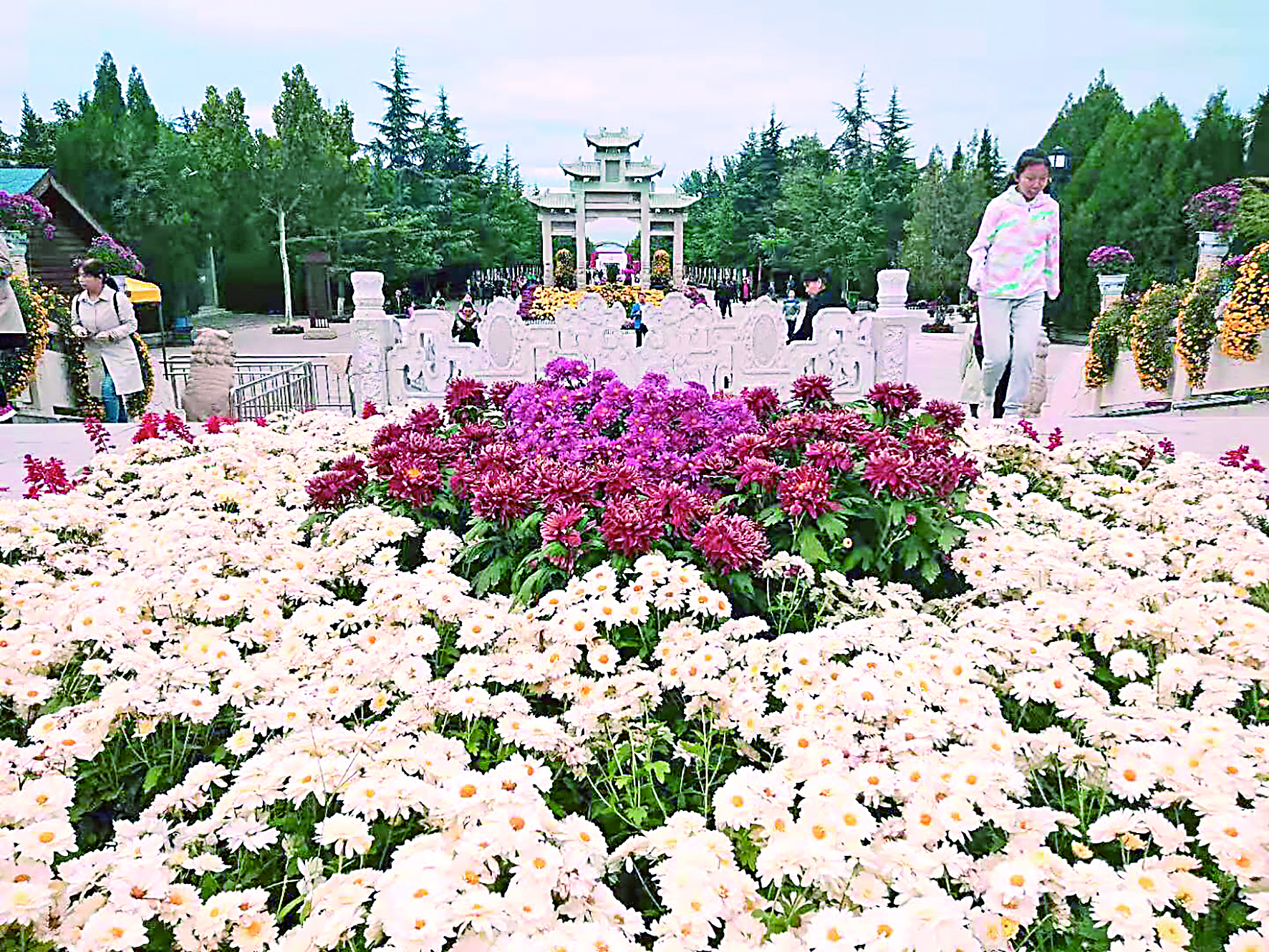 10月5日下午,秋雨停歇之后,盐湖区舜帝公园内迎来大量游人。除了古建筑和古树,公园内怒放的各色菊花、有味道的书画展览,为游客增添了更多快乐。随处可见、迎风招展的五星红旗,更是给舜帝公园平添了别样魅力。