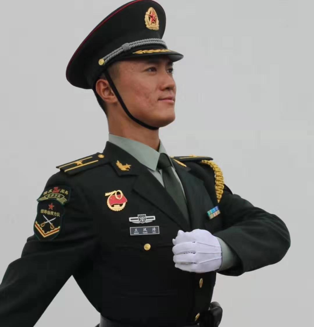 今年,中华人民共和国70华诞,他再次申请受阅。集训临行前得知妻子怀孕,预产期正好是10月上旬。一边是强烈的阅兵情怀,一边是需要照顾的妻女,王凤涛一时陷入两难境地。妻子一句“放心吧,我们各自努力,共同为祖国献礼”让他毅然选择梦想,并再次担当排头兵重任,表现出了更加强烈的荣誉感和使命感。