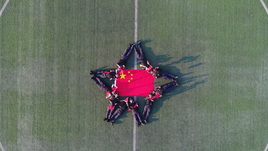 和国旗合个影