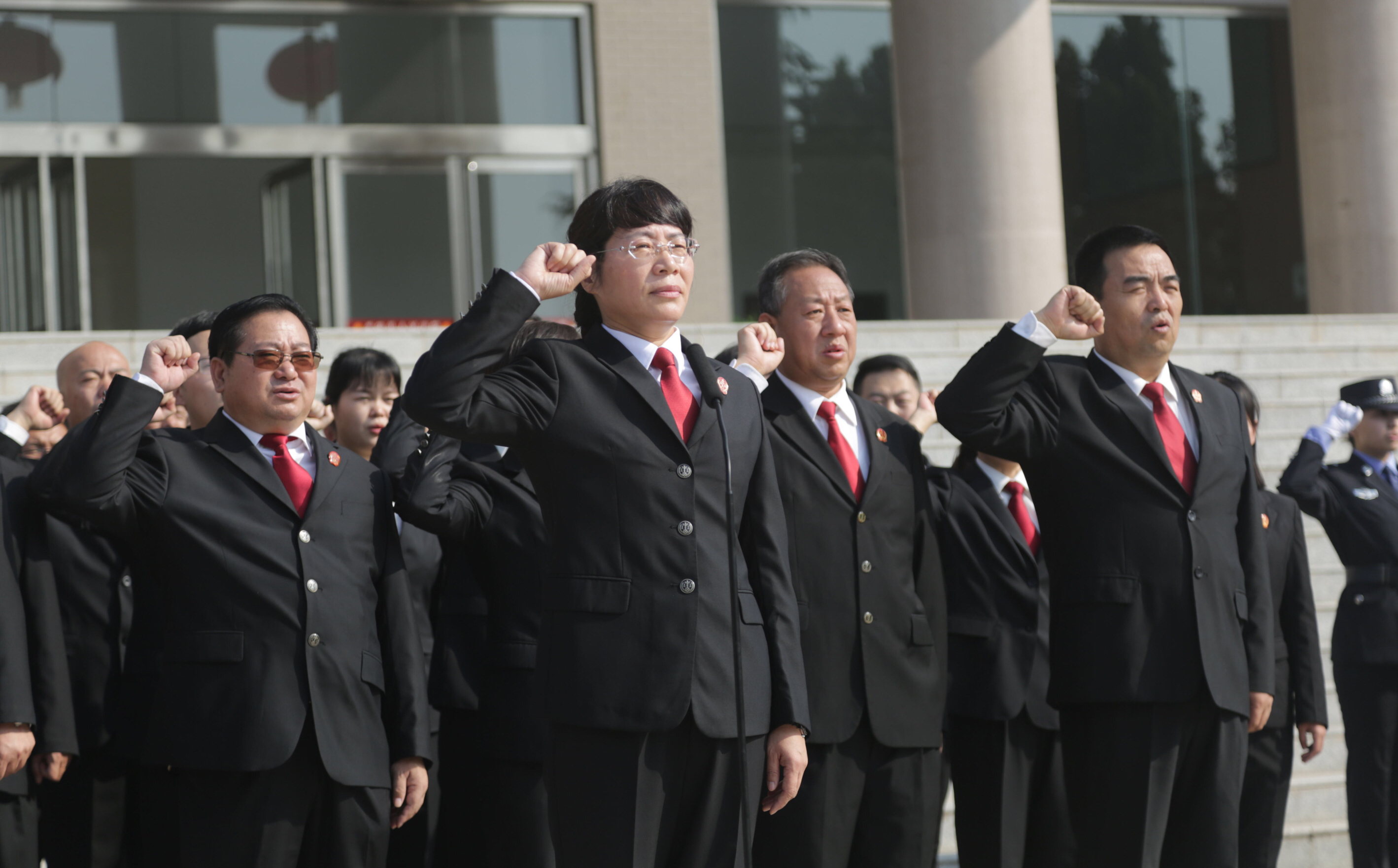 众志成城、担当有为,敢做司法体制改革的弄潮儿;上下团结、齐心协力,认真履行宪法法律赋予的神圣职责;开拓创新、锐意进取,努力推动审判执行工作再上新台阶;真抓实干、攻坚克难,让人民群众在每一个司法案件中感受到公平正义。这是法院人的承诺。