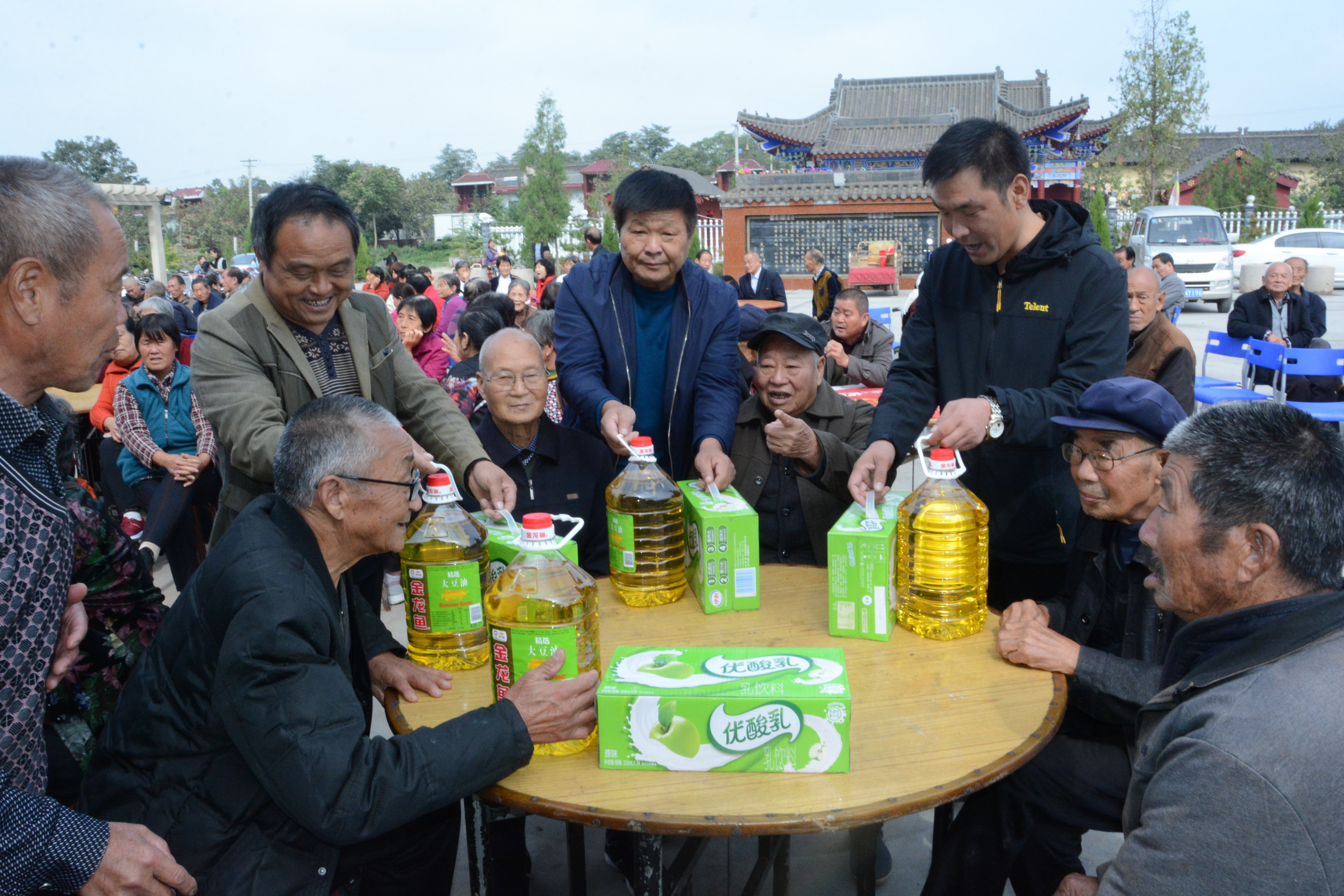 该村在运城开办奥鸿吉利4S店的村民闫晓晨,每年给全村80岁以上老人赠送几件礼品,坚持数年从不间断。全村尊老敬老蔚然成风,老年人的幸福指数不断提升。 在今年的重阳节,该村邀请乡老龄委文艺演唱团在文化中心舞台上为老人们演出“清唱”“小戏”等节目,本村青年舞蹈队为老人们献歌献舞,老年健身队表演了太极拳和太极扇;闫晓晨给全村80岁以上老人每人赠送了一壶食用油、一箱奶制品;本村14名今年进入60岁的年轻老人联合出资,为老人们奉献了一顿丰盛的午餐,36、48岁的村民则为演戏出资。大井村党支部书记闫军强、村委主任闫跃江带领全体村组干部为老人们端茶敬酒全程服务,让老人们欢欢喜喜度过了自己的节日。