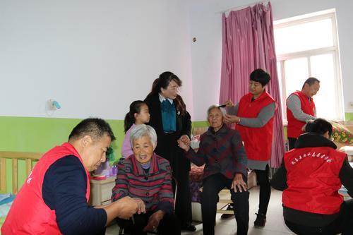 10月7日,闻喜县涑水志愿者来到县松林敬老院,为老人梳头、洗脚、捶背、整理卫生。