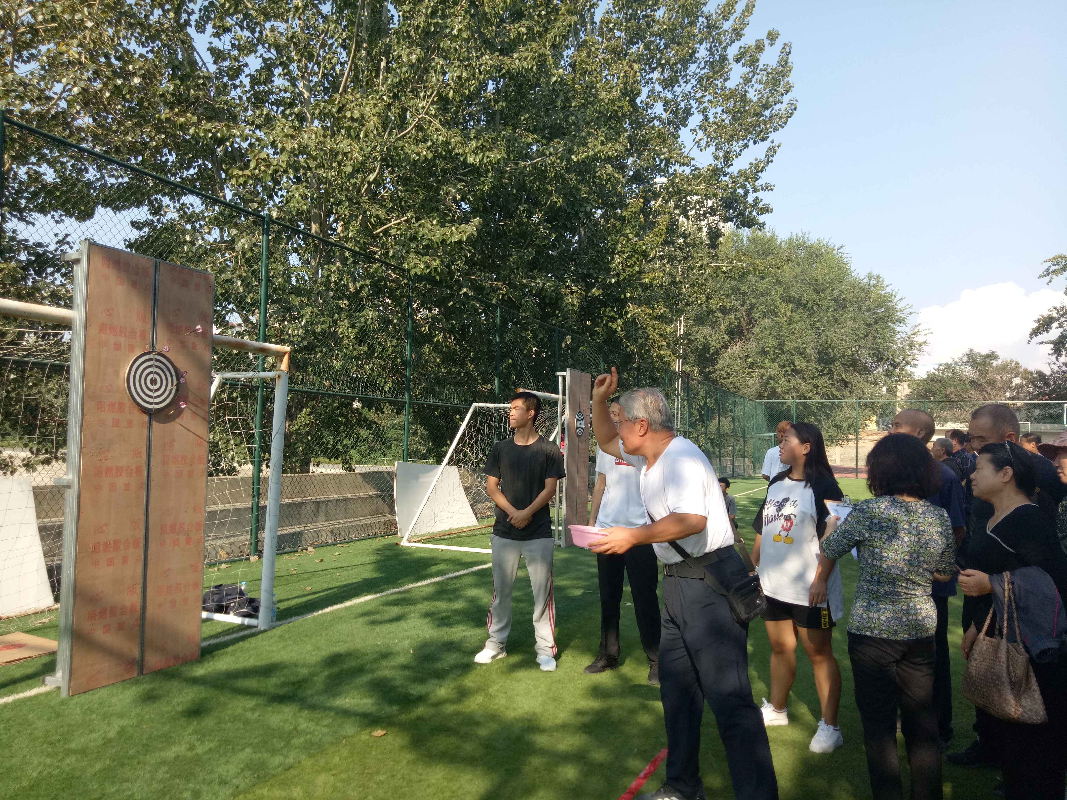 老人们进行扔飞镖比赛 王露 摄
