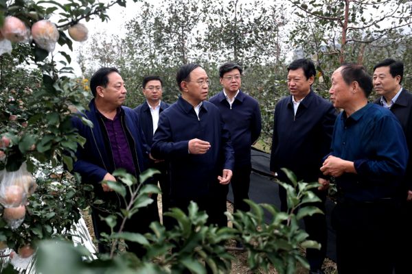 昨日,市委书记刘志宏在万荣县南张乡闫村现代矮化苹果示范园调研。 记者 雷哲侠 摄