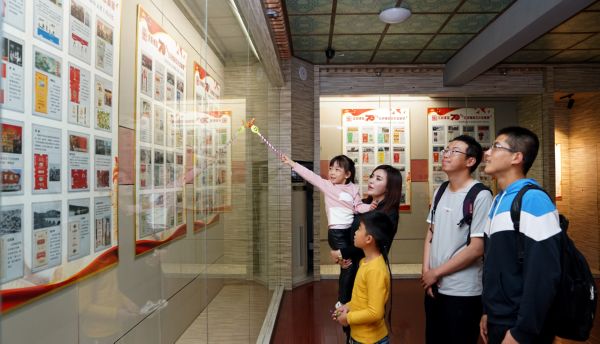 ▲市民在参观红色烟标收藏展 董应赞 摄