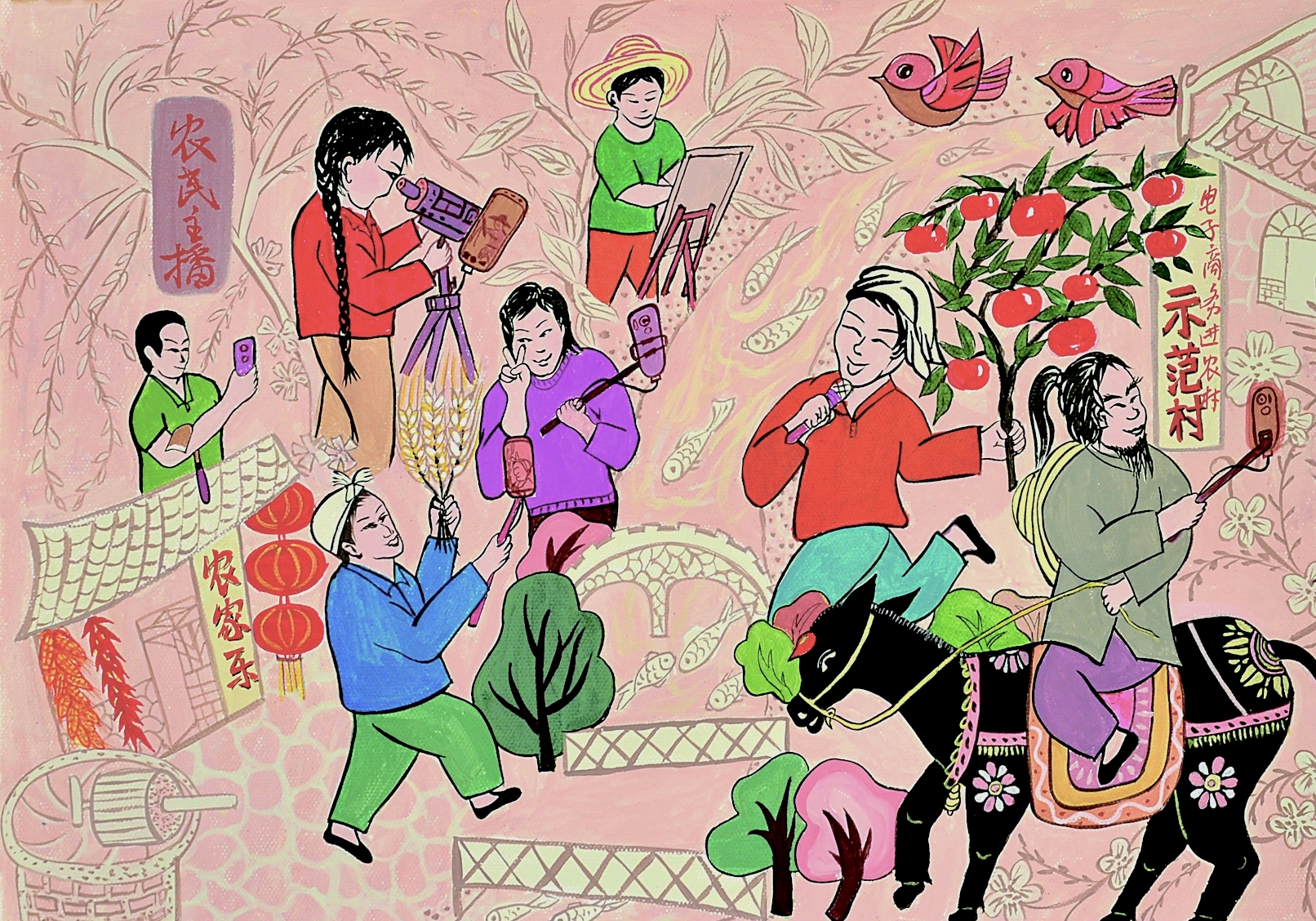 本届农民画展以“河东情农民画”为主题,由市文化和旅游局、市文学艺术界联合会、市农业农村局主办,市民间文艺家协会、运城农村商业银行、市农产品行业协会承办。主办方通过对来自全市各县(市、区)200余幅作品的专业评审,有80余幅作品和若干农民画衍生品入展,作品主要出自市民间文艺家协会农民书画艺术专业委员会的农民艺术家之手。他们凭着丰富的民俗知识和生活经验,将对生活、对家乡的热爱,化作灵感和动力,创作出了色调明快、风格简洁、构图大胆、形式夸张的精美画作。今选登部分作品以飨读者。