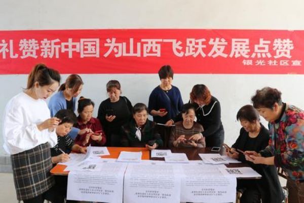 ▲10月13日,闻喜县银光社区工作人员与辖区德润大厦小区居民,共同为“党的十八大以来山西深化改革、转型发展、改善民生重大举措及成果”评选活动投票、点赞。