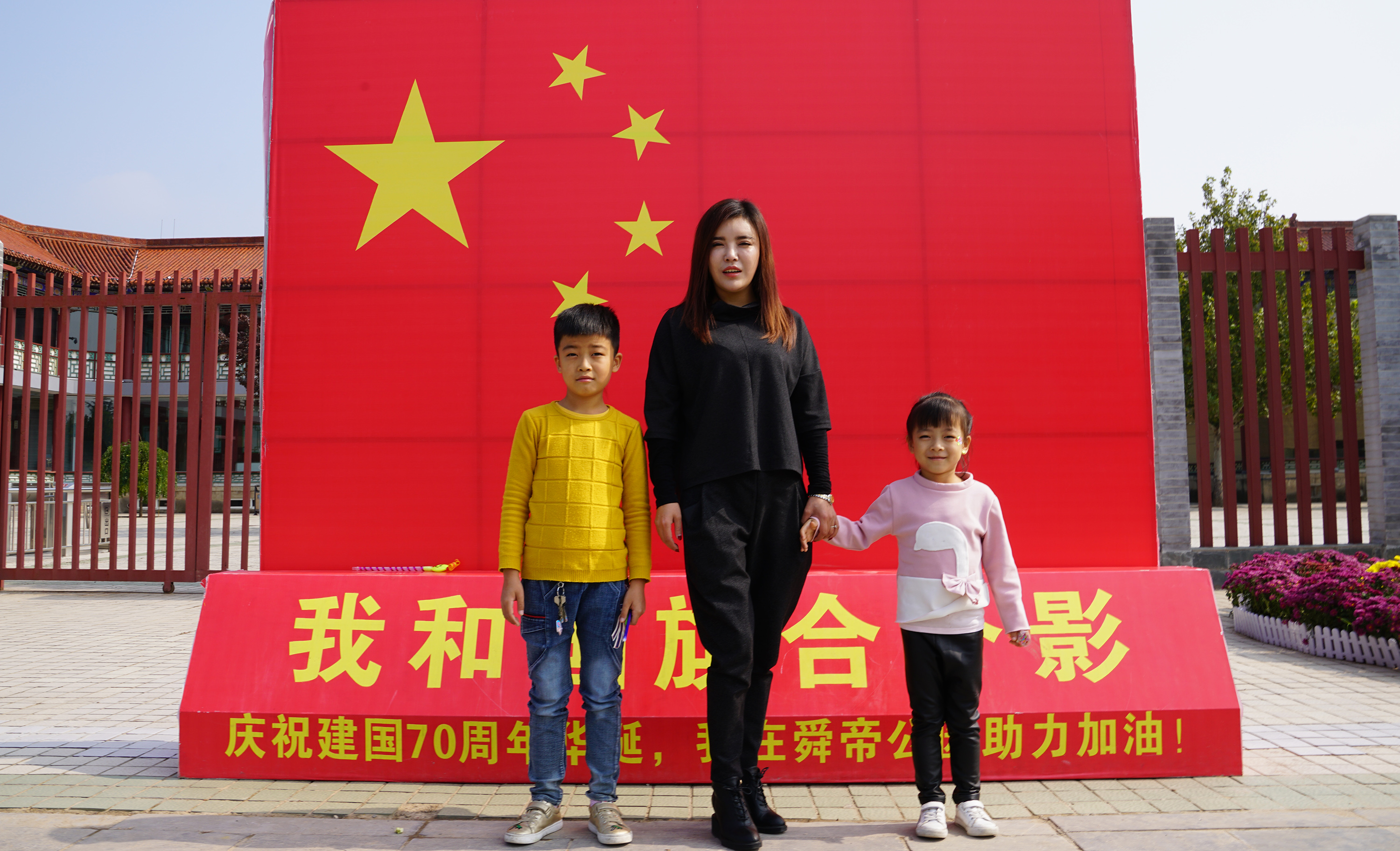为庆祝中华人民共和国成立70周年,舜帝公园在游人密集的博物馆门前设置了“我和国旗合个影”造型展板,吸引了大批市民和游客前来合影。