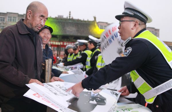 活动开始前,民警向附近村民发放了交通安全宣传挂图、单页等资料,并向他们讲解了交通安全常识。