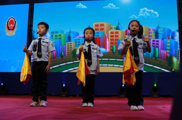 ▲小学生表演节目《交通安全记心间》 樊朋展 摄