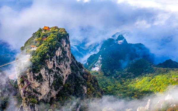 ▲10月16日,在永济五老峰景区拍摄的云雾缭绕的云海景观(无人机拍摄)。