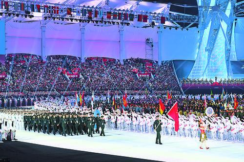 “为了飞越大海的鸽子在沙丘安睡,为了穿越天空的炮弹被永久禁止,我愿铸剑为犁,愿枪炮弯曲……”在主题歌《和平的薪火》掀起的热烈气氛中,第七届世界军人运动会开幕式圆满结束。
