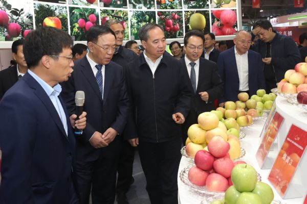 10月21日,王成、李思进、刘志宏、朱鹏等省市领导与嘉宾参观第四届山西(运城)国际果品交易博览会。 记者 雷哲侠 摄