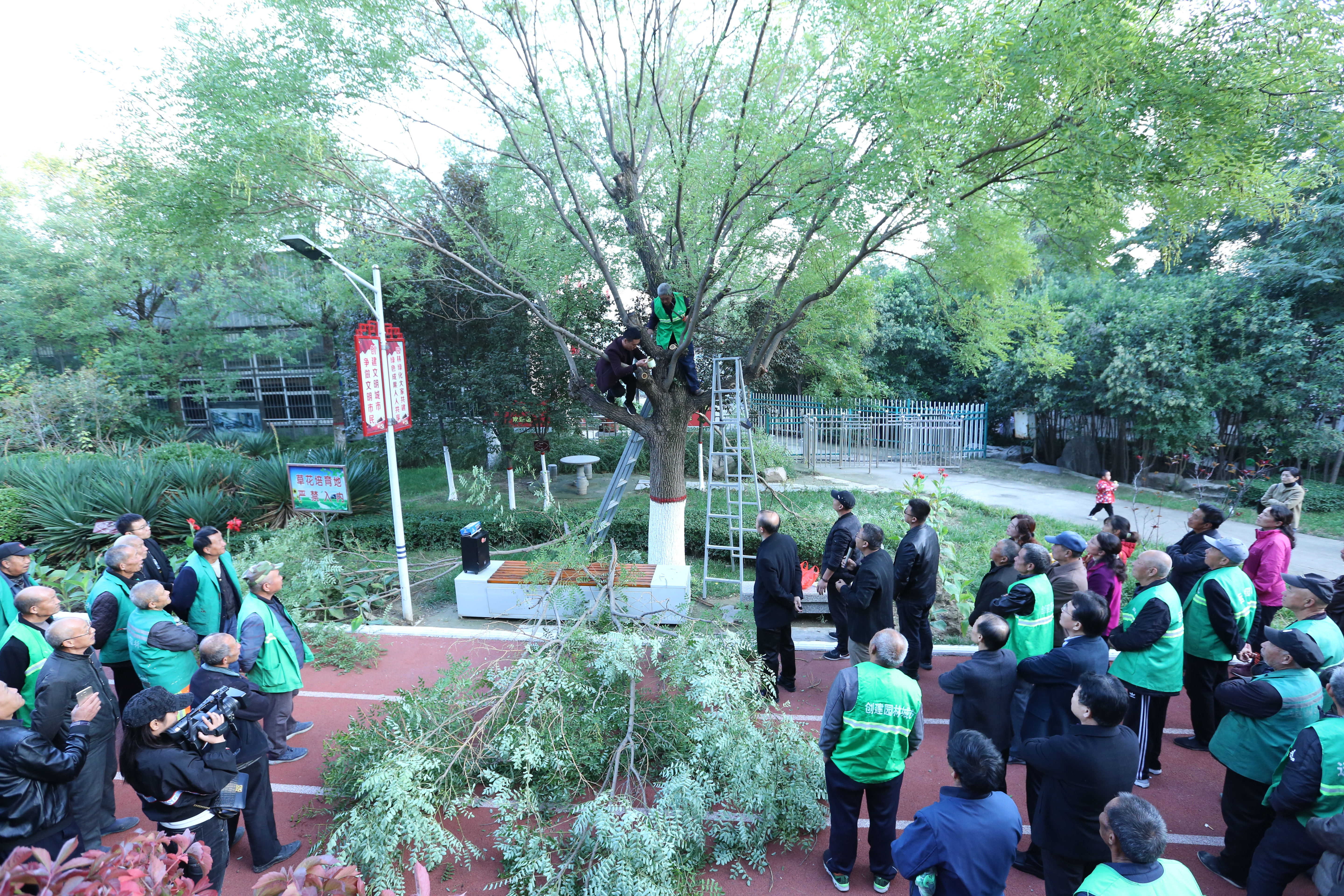 ▲讲师在航天公园演示树木修剪技术 祁克宁 摄