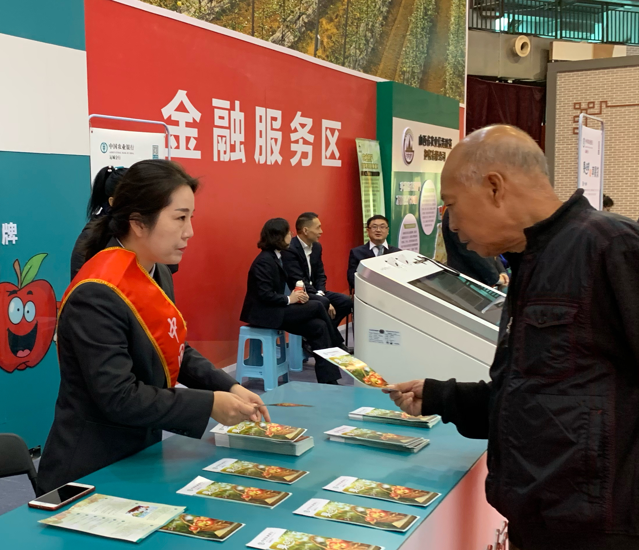 10月21日,第四届山西(运城)国际果品交易博览会开幕。记者走进位于市农业展览中心的展区,在展区西北方向,中国农业银行运城分行工作人员正热情地为来往参观的市民介绍服务产品。