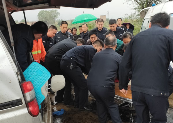 “险情就是命令,在得知前方发生车祸后,我赶紧下车查看了事故现场。”当时参与救援的河津法院司法警察大队大队长张建国回忆说,越往近走,越觉得事态严重,拨开人群发现现场一片凌乱。雨水、泥水混在一起,树枝、行李、汽车零件散落一地,一辆红色拖挂大卡车穿过高速路的中央护栏,横跨在护栏上,一辆商务车停放在路边,车头严重变形,一辆黑色轿车擦伤,停在远处。查看完现场,张建国立刻对着对讲机喊道:“你们13个都下来,到事故现场,赶快。”说完,他拿起手机赶紧拨打救援电话。