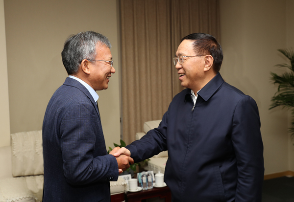 刘志宏等拜会国网公司时同该公司董事长侯清国亲切握手 记者 雷哲侠 摄