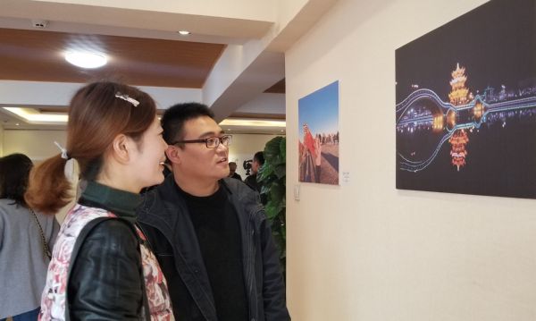 ▲邮储银行运城市分行员工在参观书法、摄影作品展 范楚乔 摄