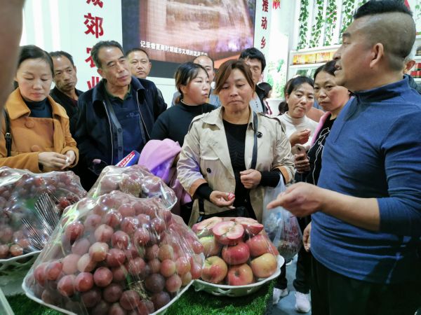 果博会上真热闹,客商多,果品多,考察学习的人更多。这不,10月24日一大早,夏县“咱老家土特产专业合作社”的负责人孙一雄就组织合作社70余名社员代表,来到果博会主会场“取经”了。