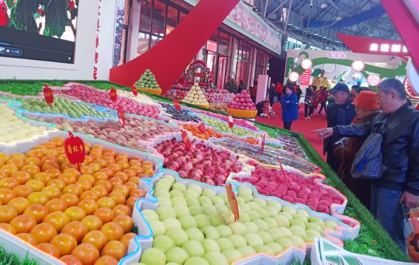 10月25日,走进果博会临猗展区,参观者立马被“水果地图”吸引了。角杯乡的柿子、临晋镇的石榴……14种不同水果分别代表一个乡镇,并按照各乡镇的行政地图排列好,让参展者一眼就能看到每个乡镇的特色。