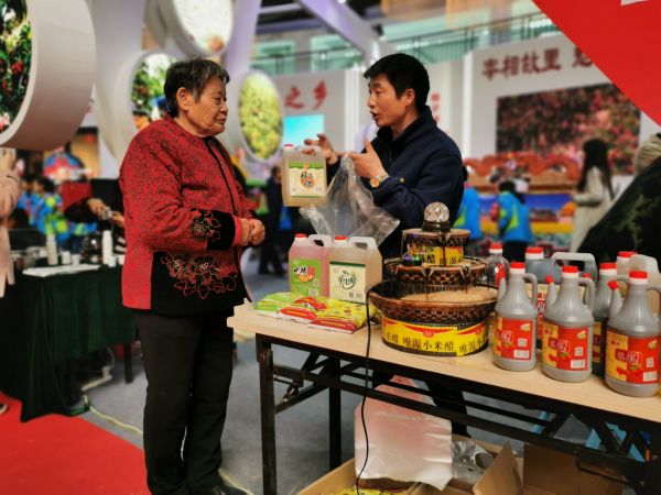 市民在果博会闻喜展馆购买“唯源醋” 赵茜 摄
