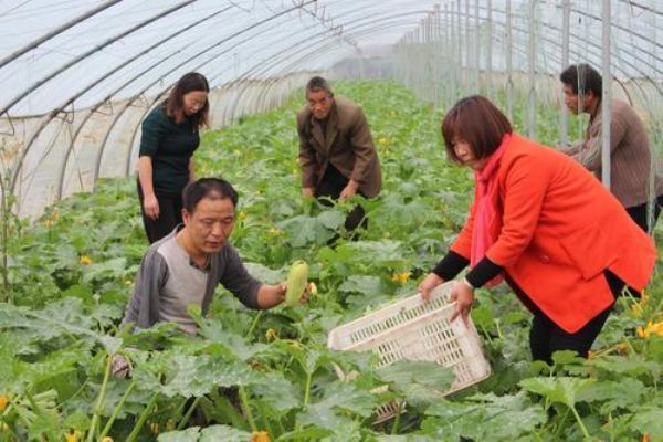 ▲马力鹏和村民搬运西葫芦