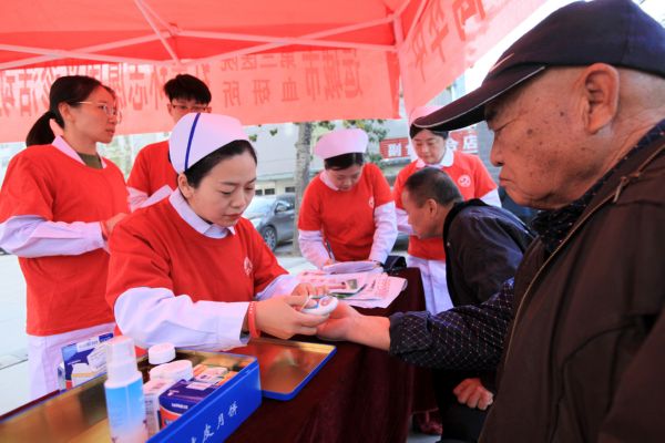 10月29日,运城市第三医院护士为市民测血糖。 记者 景冬波 摄