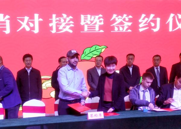 ▲河津桑尼贸易公司与巴基斯坦企业签订农产品购销协议 陶登肖 摄