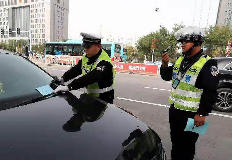 ▲10月28日,盐湖交警大队七中队民警在市中心医院对违停的车辆张贴蓝色“温馨提示卡”。 为了规范违法停车,着力解决在执法过程中选择性执法、随意性执法等漠视侵害群众利益的突出问题,盐湖交警大队坚持以人为本的理念,本着高效便民的原则,日前推出一张“温馨提示卡”打通“三个通道”,规范停车新举措。“三个通道”,即“生命通道”,在医院周边道路,以劝导教育为主,不得处罚;“希望通道”,在学生上下学期间,对即走即停的接送学生车辆,以劝导教育为主,不得处罚;“绿色通道”,外地车辆和驾驶人首次来运,违法停放的,不得处罚。该大队旨在借助打通“三个通道”,规范违法停车,助推文明城市创建工作。 葛崇收 摄
