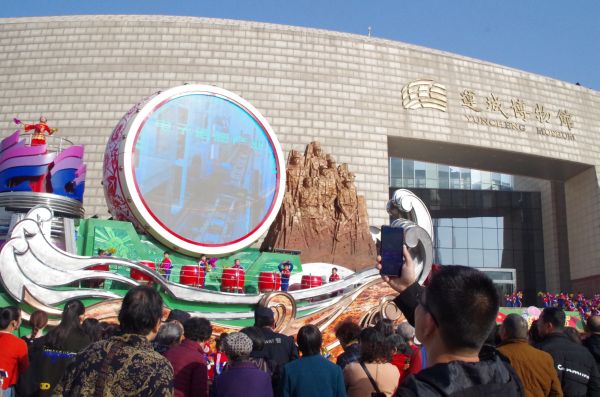 上午9时30分,在运城博物馆南门,国庆彩车运城(晋南片区)巡展暨群众文化活动启动仪式在欢庆的锣鼓声中开幕,现场播放着“奋进山西”国庆彩车专题片,重现了山西彩车徐徐驶过天安门广场时的场景。开幕式结束后,我市广大文艺爱好者奉献了一场精彩的演出,威风锣鼓和灵动的舞姿,让大家再次感受到国庆当天的盛况。