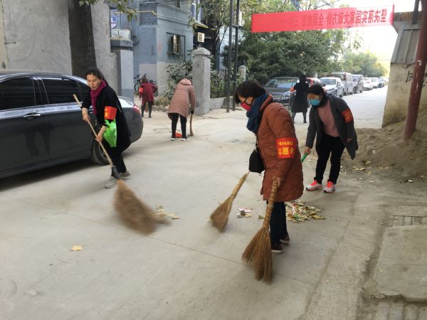 ▲志愿者在清扫巷道 樊亚楠 摄