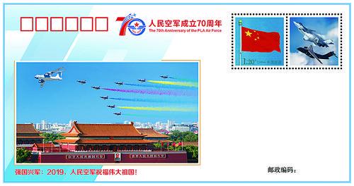 这是《我爱祖国的蓝天》主题纪念封之一。 当日,空军向社会公开发布一套100枚强军主题纪念封《我爱祖国的蓝天》,展现不忘初心、奋飞向前的蓝天英姿,致敬人民空军成立70周年。 新华社发