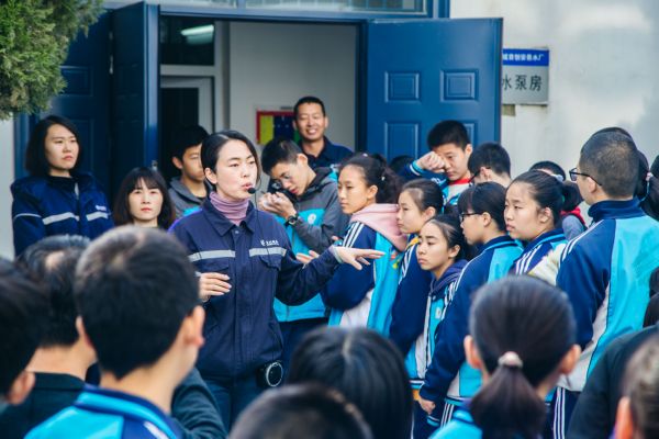 当天上午9时,在工作人员的引导下,学生们实地参观了安邑水厂一期及二期厂区加药间、消毒室、沉淀池、加压泵房等工艺流程车间,并在专业人员的讲解中,学习公司的制水工艺流程,体会化学知识在社会实践中发挥的作用。