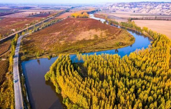 ▲11月3日,在万荣县荣河镇境内拍摄的秋景(无人机拍摄)。